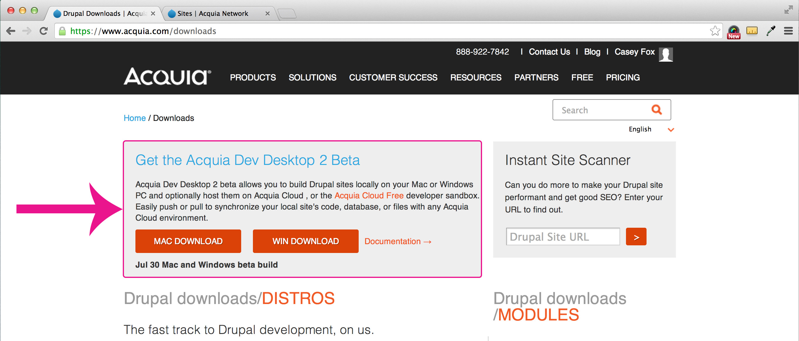 First things first, you need a dev environment. In this tutorial we’ll be talking about using the Acquia Dev Desktop Beta 2. Just install and launch and you’re ready to start. Take note of the base folder, as you’ll be installing the dev sites within. Start with downloading a copy of Drupal 8 via git and saving into a new folder within your dev site install. Naming is important, incase you end up with multiple projects, so call this drupal8. Next launch your new local site and go through the installation process. This is like any other Drupal install, and only takes a few minutes.